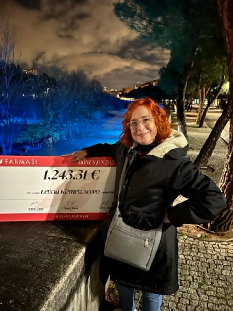 También me corté y teñí el pelo... y siendo que en el verano de 2025 me había mudado a España, pude asistir a la convención de Farmasi en Madrid donde me dieron este cheque, que representa lo que gané en las primeras seis semanas de actividad (y no, no me llevé a mi equipo anterior). Nota que en la empresa anterior me había tomado 1 año y 9 meses lo que aquí me tomó 6 semanas...